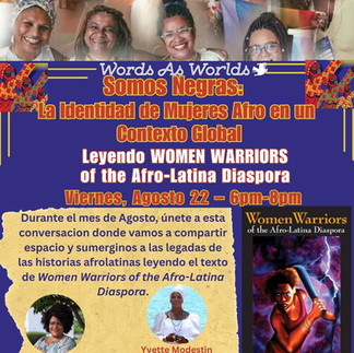 For the month of August, join this bookclub discussion as we immerse ourselves into the legacy of AfroLatina stories by reading the text of Women Warriors of the Afro-Latina Diaspora. This collection features essays and poems in which Latina women of African descent share their stories.